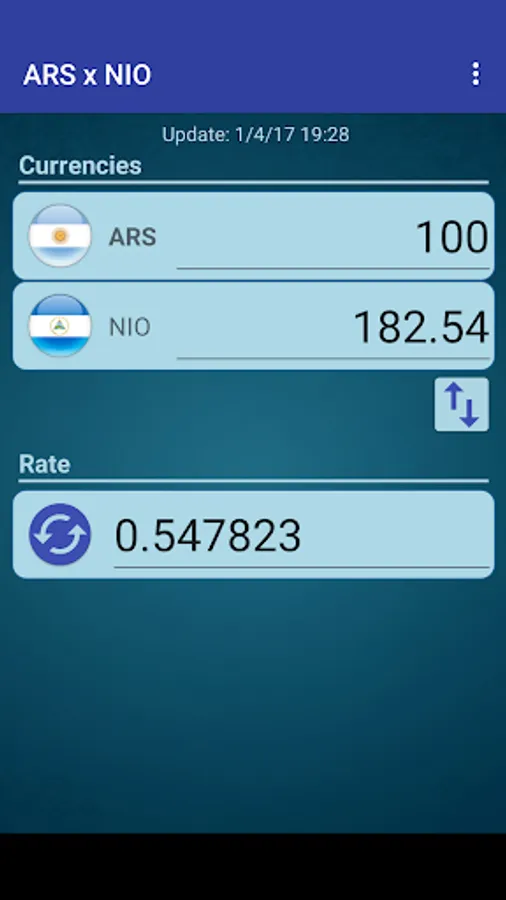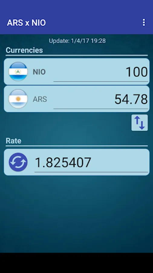 A simple currency converter from Argentine Peso to Cordoba Oro and from Cordoba Oro to Argentine Peso.