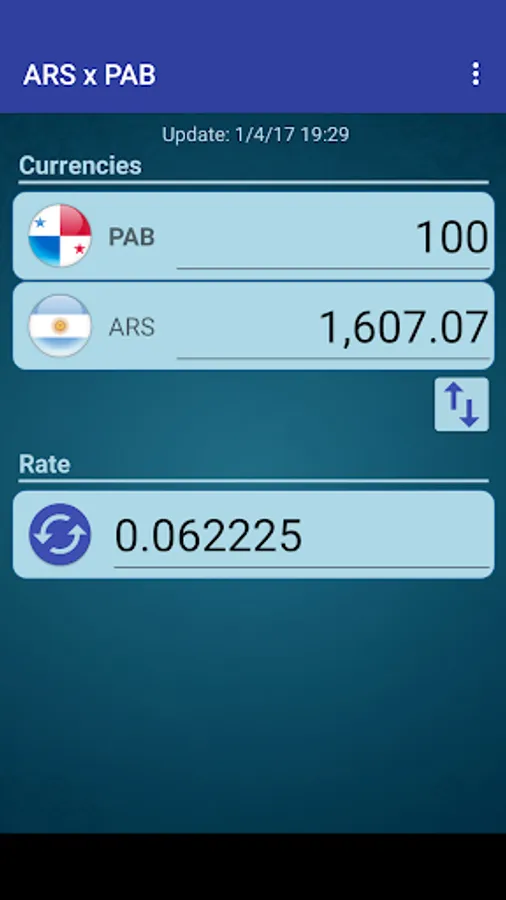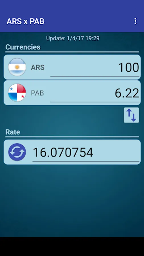 A simple currency converter from Argentine Peso to Panamanian Balboa and from Panamanian Balboa to Argentine Peso.