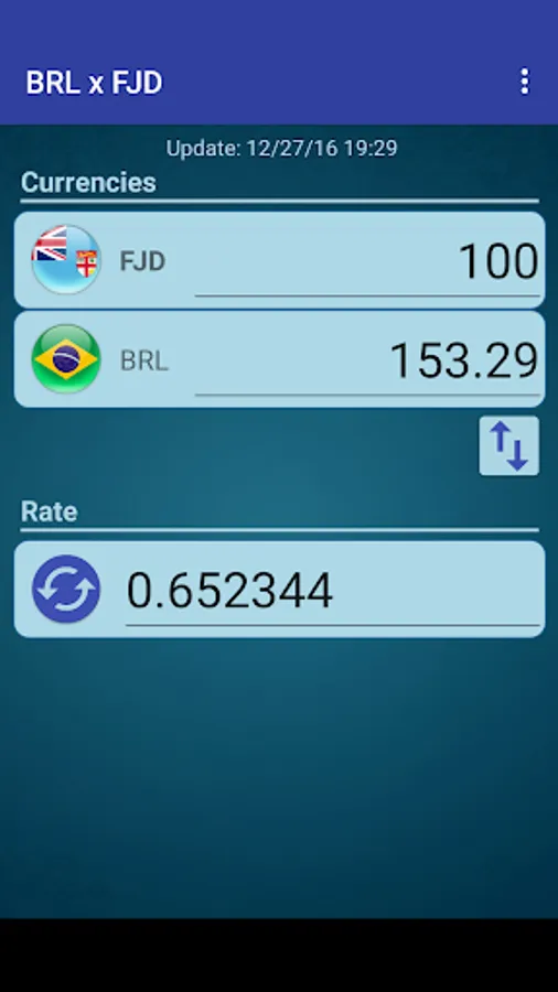 A simple currency converter from Brazilian Real to Fijian Dollar and from Fijian Dollar to Brazilian Real.