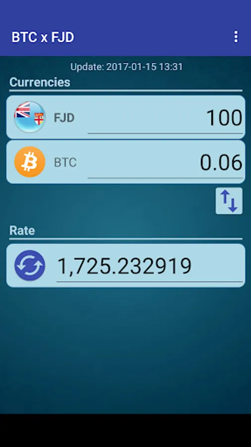 A simple currency converter from Bitcoin to Fijian Dollar and from Fijian Dollar to Bitcoin.