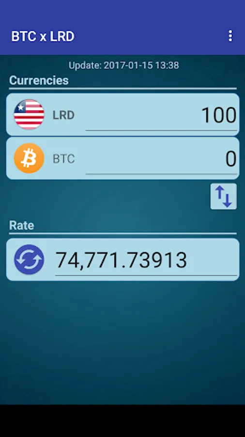 A simple currency converter from Bitcoin to Liberian Dollar and from Liberian Dollar to Bitcoin.
