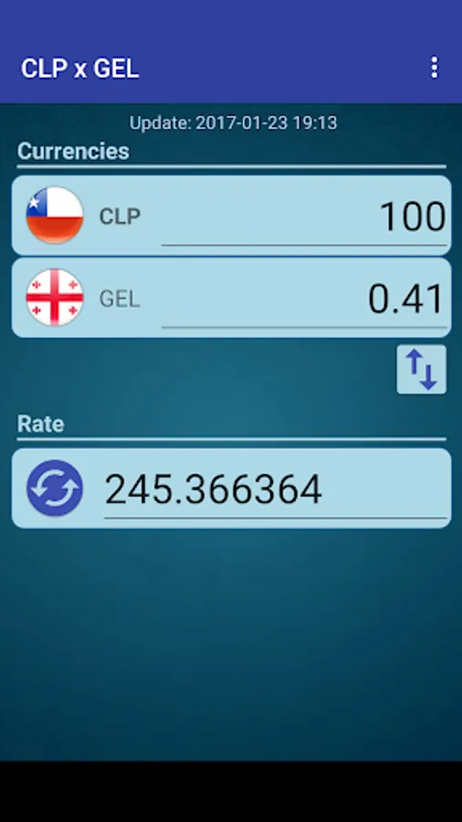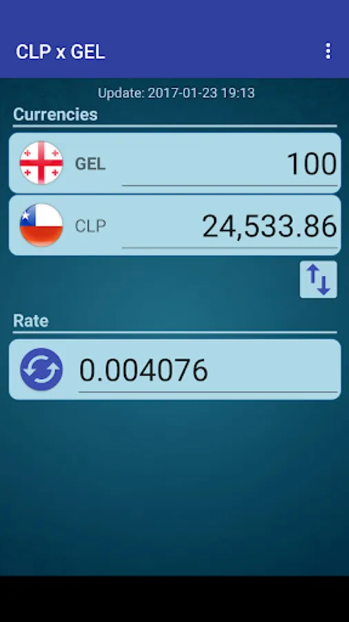 A simple currency converter from Chilean Peso to Georgian Lari and from Georgian Lari to Chilean Peso.