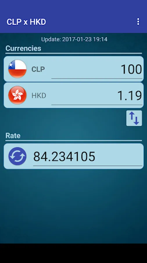 A simple currency converter from Chilean Peso to Hong Kong Dollar and from Hong Kong Dollar to Chilean Peso.