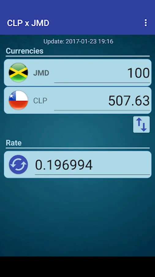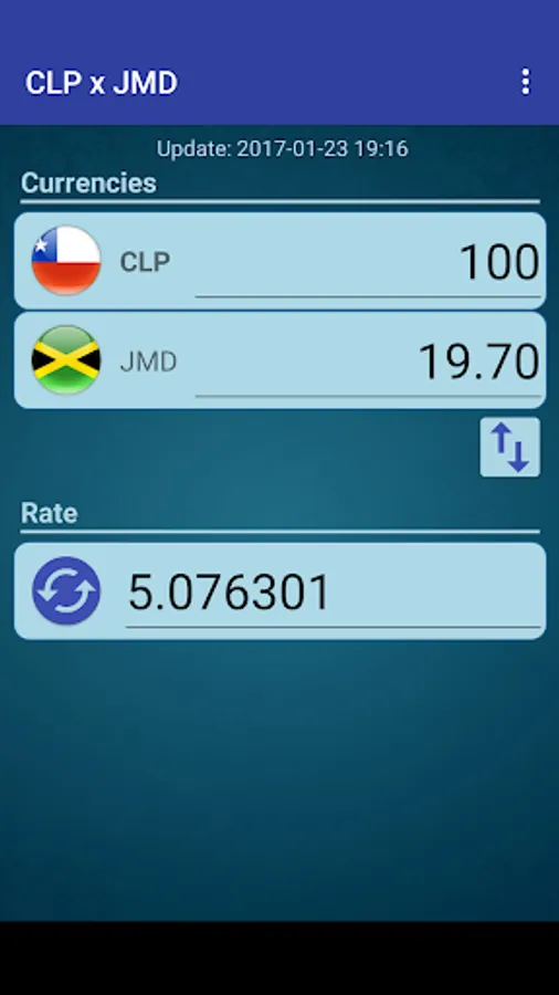 A simple currency converter from Chilean Peso to Jamaican Dollar and from Jamaican Dollar to Chilean Peso.