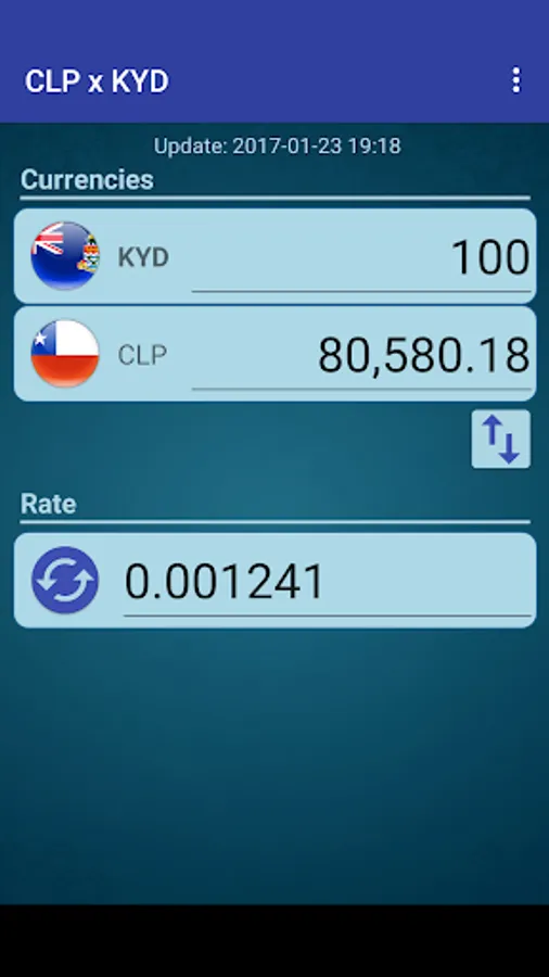 A simple currency converter from Chilean Peso to Cayman Islands Dollar and from Cayman Islands Dollar to Chilean Peso.