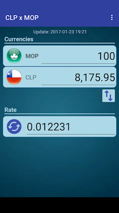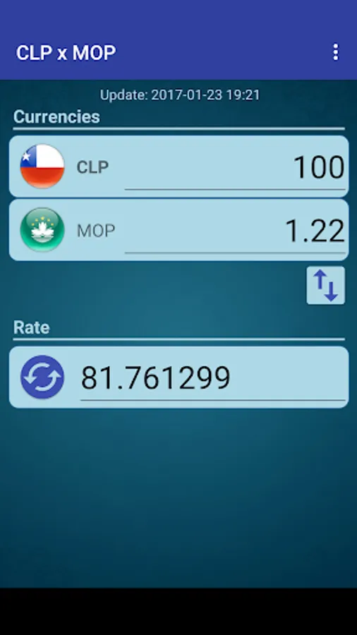 A simple currency converter from Chilean Peso to Macanese Pataca and from Macanese Pataca to Chilean Peso.