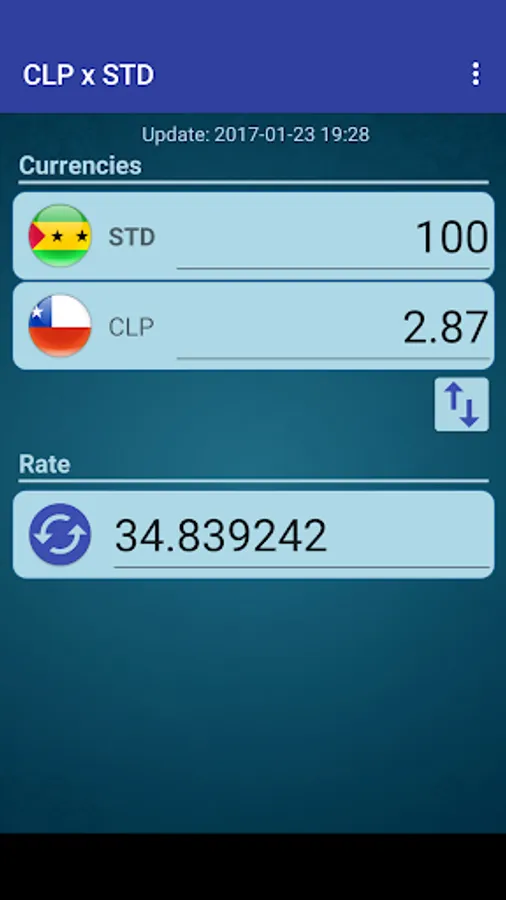 A simple currency converter from Chilean Peso to Sao Tomean Dobra and from Sao Tomean Dobra to Chilean Peso.