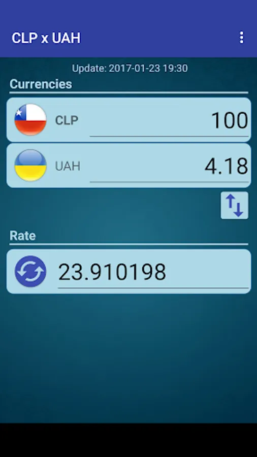 A simple currency converter from Chilean Peso to Ukrainian Hryvnia and from Ukrainian Hryvnia to Chilean Peso.
