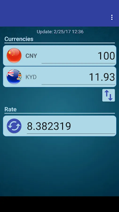 A simple currency converter from Chinese Yuan to Cayman Islands Dollar and from Cayman Islands Dollar to Chinese Yuan.