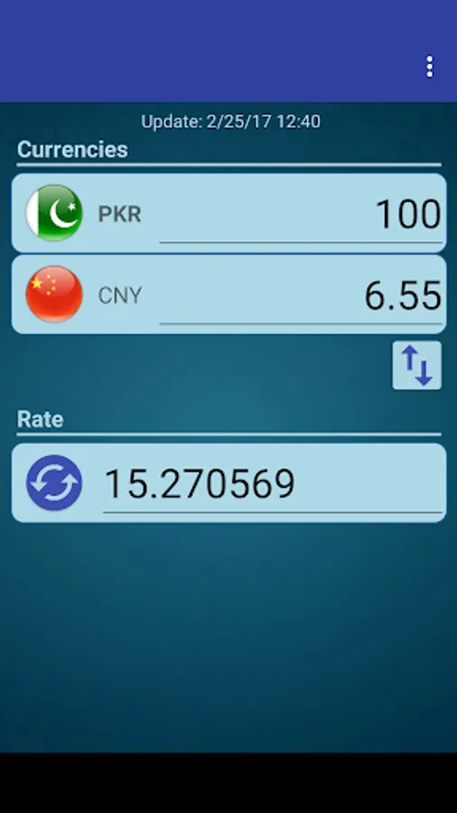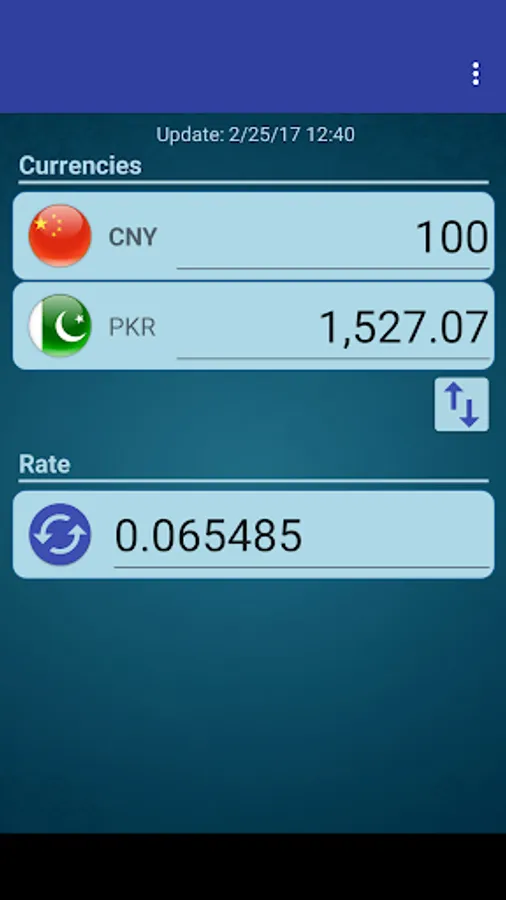 A simple currency converter from Chinese Yuan to Pakistan Rupee and from Pakistan Rupee to Chinese Yuan.