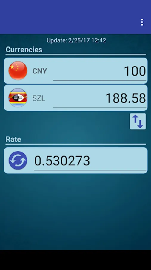 A simple currency converter from Chinese Yuan to Swazi Lilangeni and from Swazi Lilangeni to Chinese Yuan.