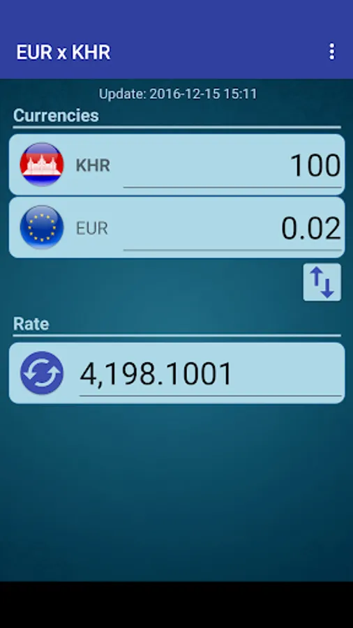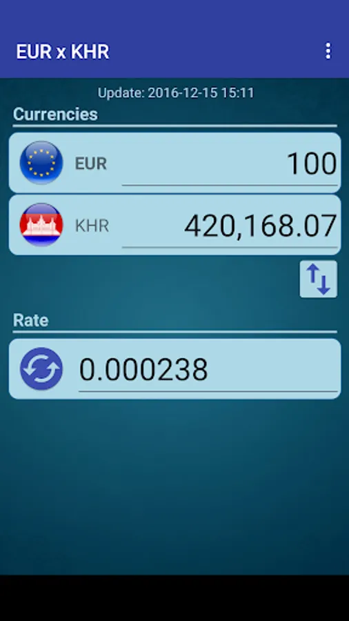 A simple currency converter from Euro to Cambodian Riel and from Cambodian Riel to Euro.