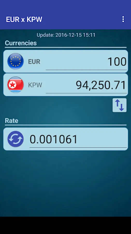 A simple currency converter from Euro to North Korean Won and from North Korean Won to Euro.