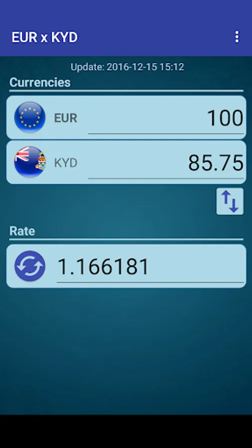 A simple currency converter from Euro to Cayman Islands Dollar and from Cayman Islands Dollar to Euro.