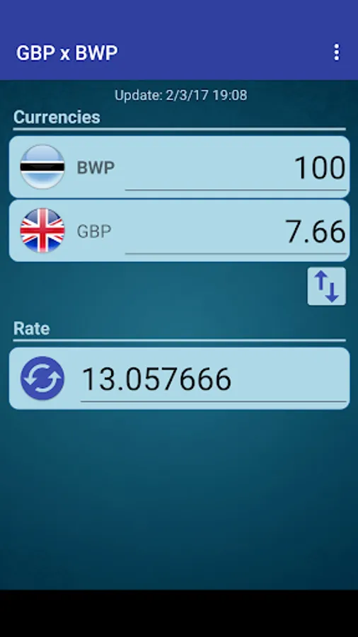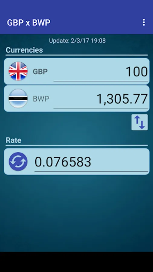 A simple currency converter from British Pound to Botswanan Pula and from Botswanan Pula to British Pound.
