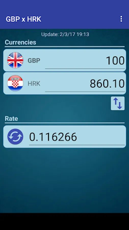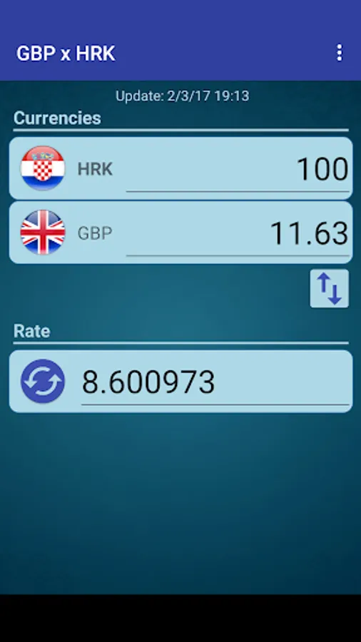 A simple currency converter from British Pound to Croatian Kuna and from Croatian Kuna to British Pound.