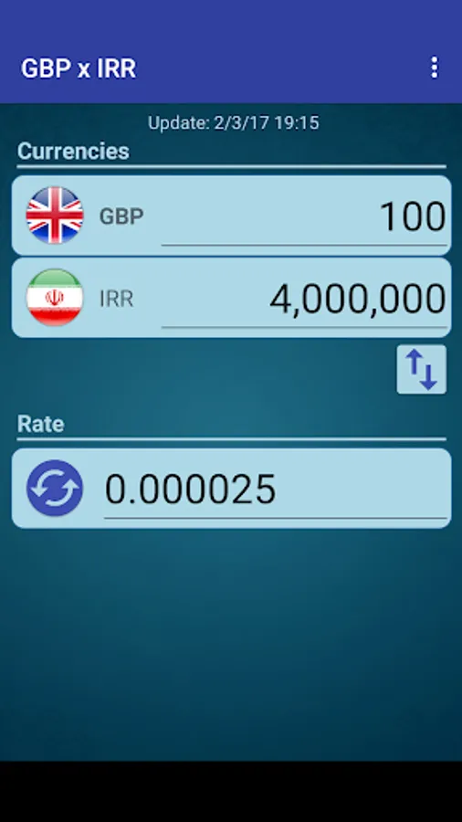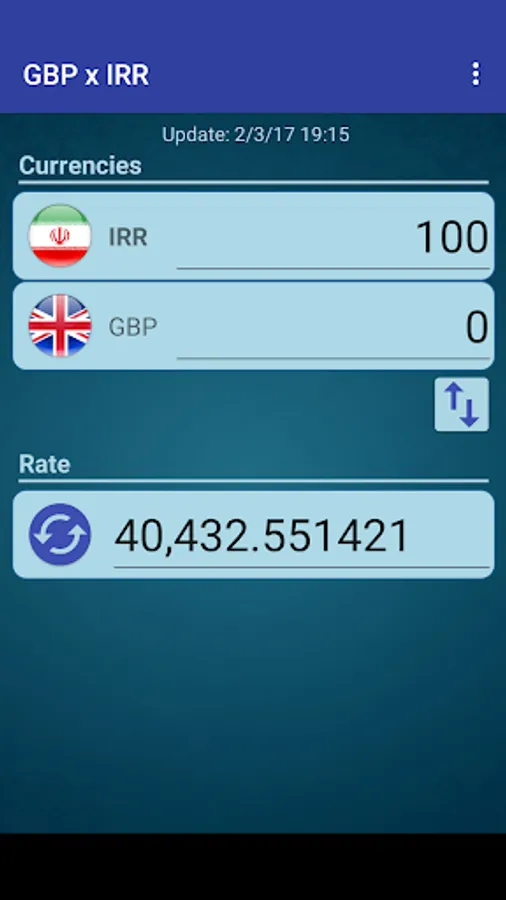 A simple currency converter from British Pound to Iranian Rial and from Iranian Rial to British Pound.