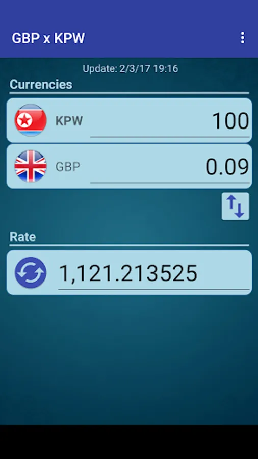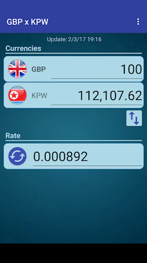 A simple currency converter from British Pound to North Korean Won and from North Korean Won to British Pound.