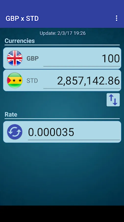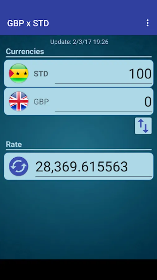 A simple currency converter from British Pound to Sao Tomean Dobra and from Sao Tomean Dobra to British Pound.