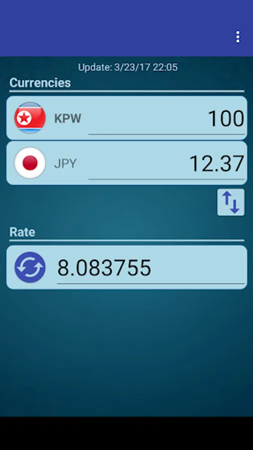 A simple currency converter from Japanese Yen to North Korean Won and from North Korean Won to Japanese Yen.
