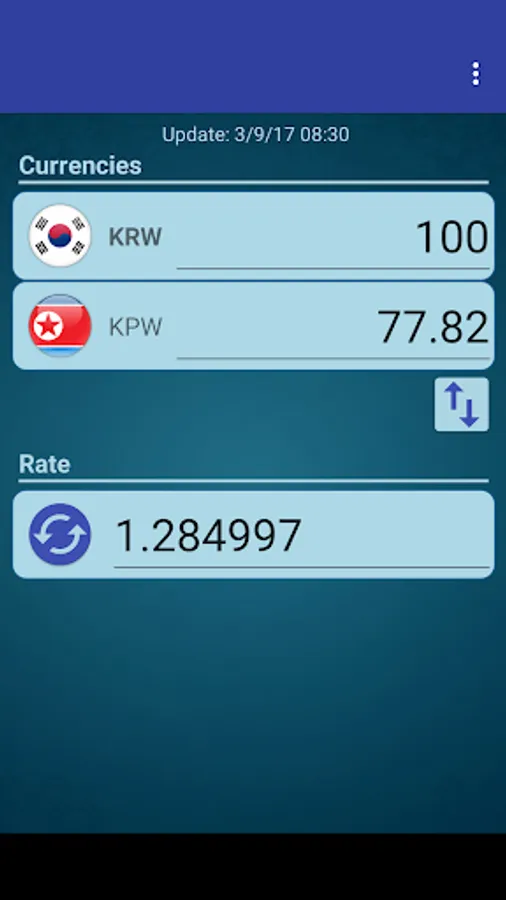 A simple currency converter from South Korean Won to North Korean Won and from North Korean Won to South Korean Won.
