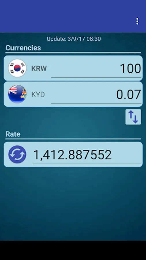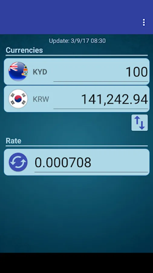 A simple currency converter from South Korean Won to Cayman Islands Dollar and from Cayman Islands Dollar to South Korean Won.