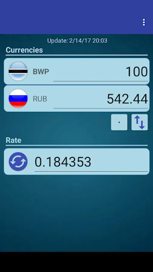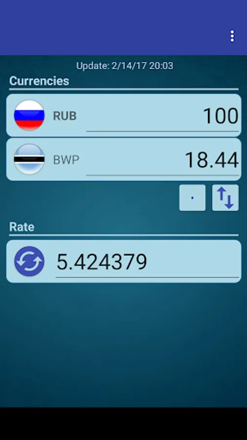 A simple currency converter from Russian Ruble to Botswanan Pula and from Botswanan Pula to Russian Ruble.