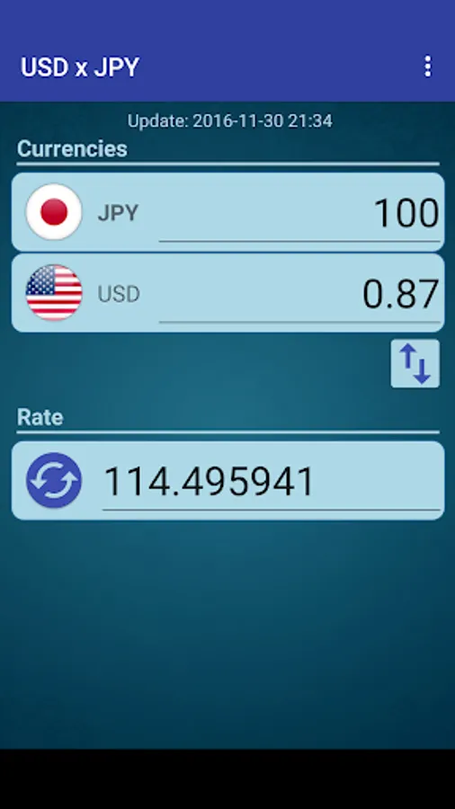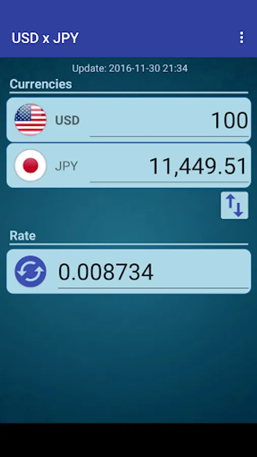 A simple currency converter from United States Dollar to Japanese Yen and from Japanese Yen to United States Dollar.