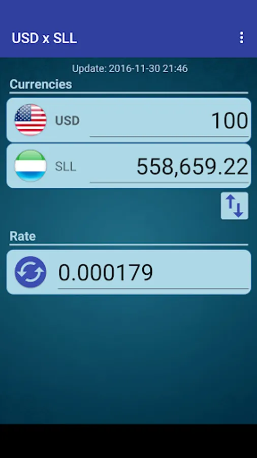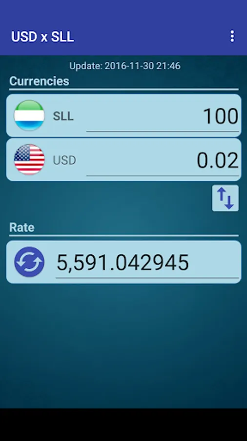 A simple currency converter from United States Dollar to Sierra Leonean Leone and from Sierra Leonean Leone to United States Dollar.