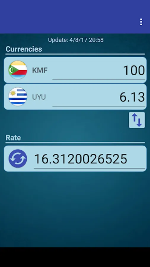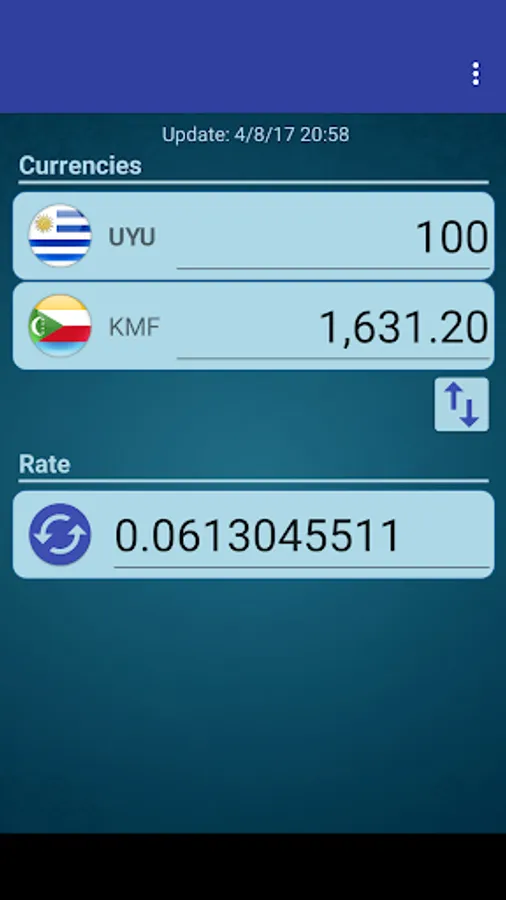 A simple currency converter from Uruguayan Peso to Comorian Franc and from Comorian Franc to Uruguayan Peso.