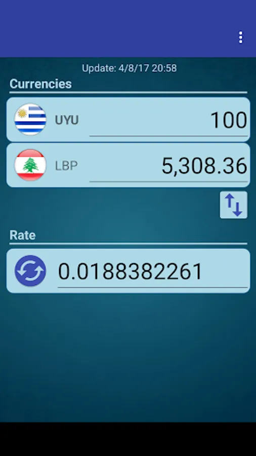 A simple currency converter from Uruguayan Peso to Lebanese Pound and from Lebanese Pound to Uruguayan Peso.