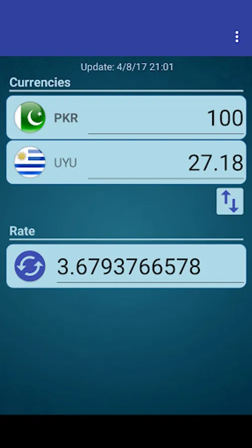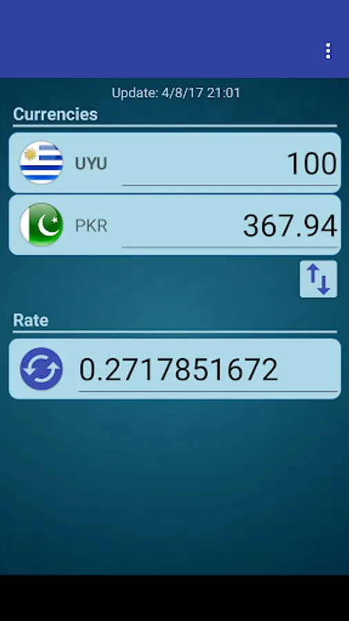 A simple currency converter from Uruguayan Peso to Pakistan Rupee and from Pakistan Rupee to Uruguayan Peso.