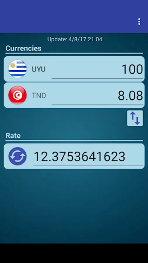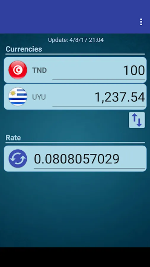 A simple currency converter from Uruguayan Peso to Tunisian Dinar and from Tunisian Dinar to Uruguayan Peso.