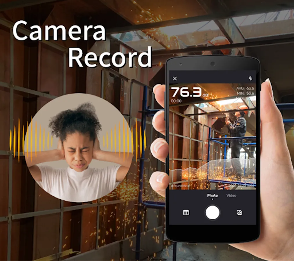 Measure sound levels, take sound meter photos, record sound measurement videos