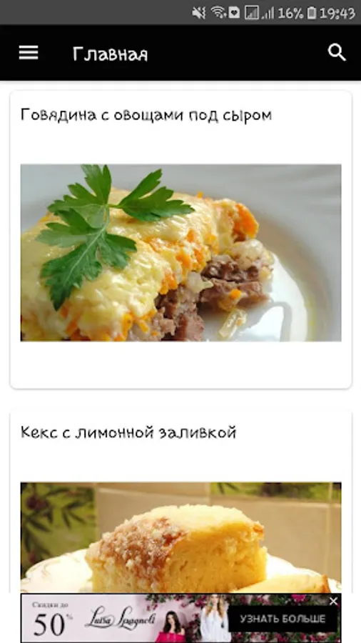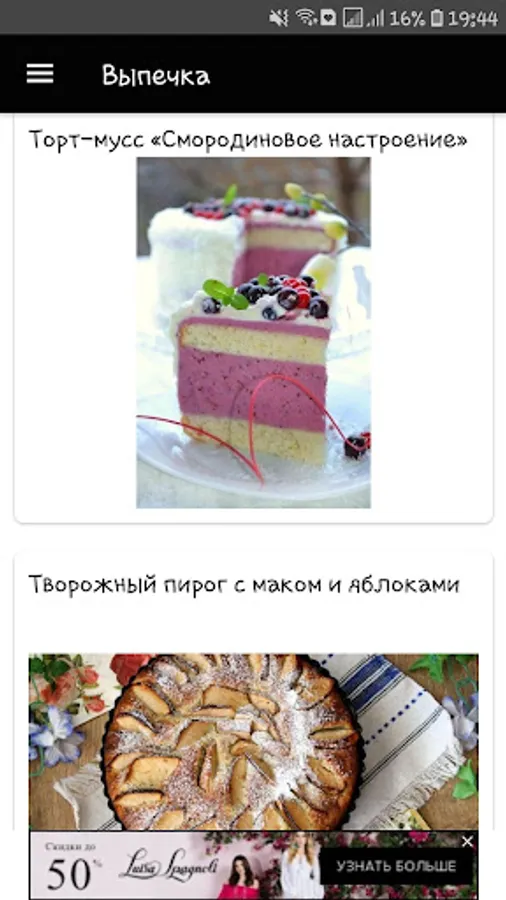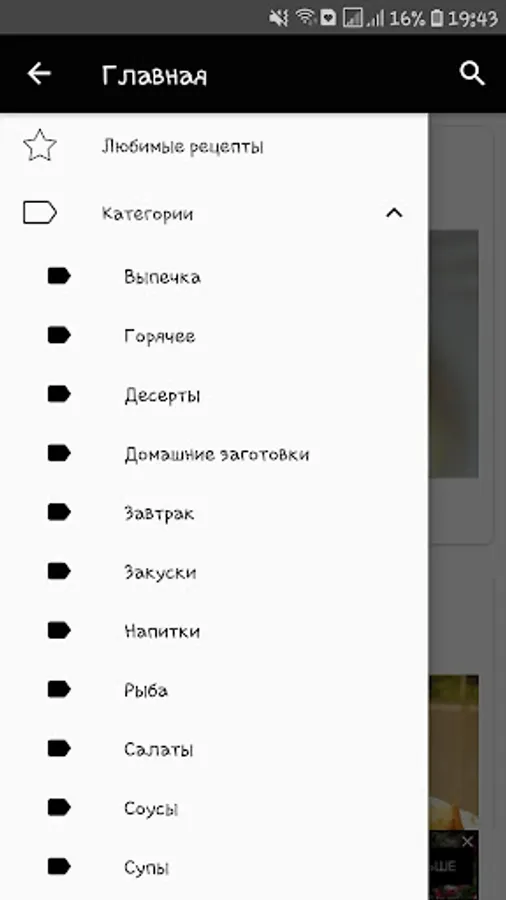 In the app Recipes with photos you can find the most interesting recipes for every day in different categories, such as pastries, desserts, drinks, hot dishes, appetizers, salads, breakfast, fish, salads, sauces, soups and even homemade preparations.