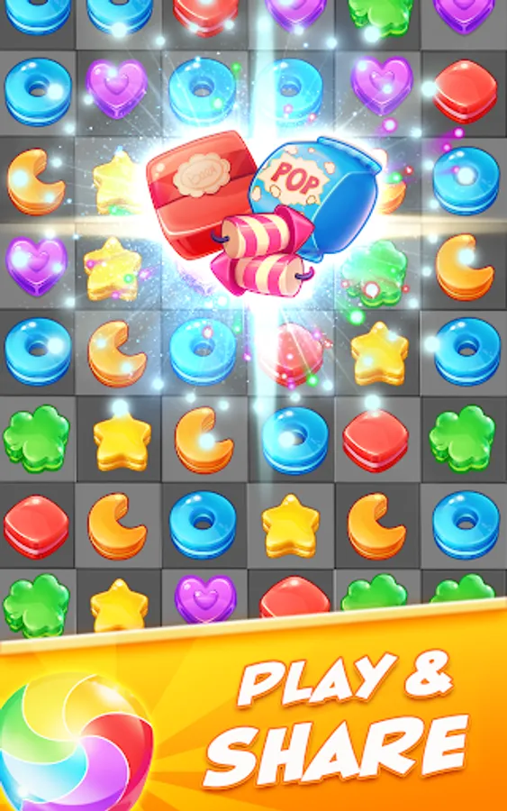> Crush and pop delicious cookies, jellies, jams and lollipops