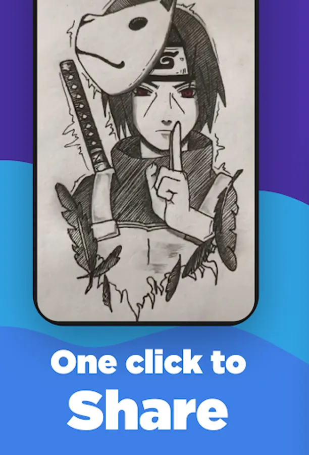 Our app features unique and diverse anime characters, including Naruto, Sasuke, and many others. You can find epic drawings of ninja fights, beautiful drawings of anime characters, and meaningful drawings that will inspire you.