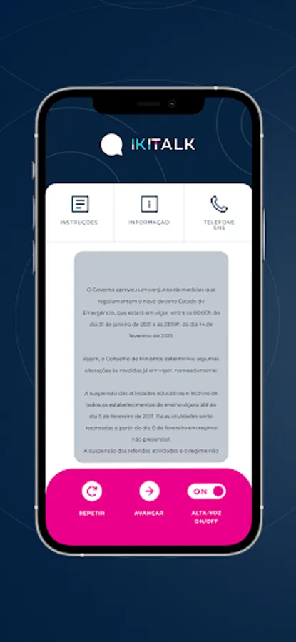 The iKiTalK application is part of the myEyes universe, an internationally awarded mobile application whose mission is to support the mobility of people with visual impairments, allowing them to move autonomously in outdoor and indoor spaces, through audio navigation.