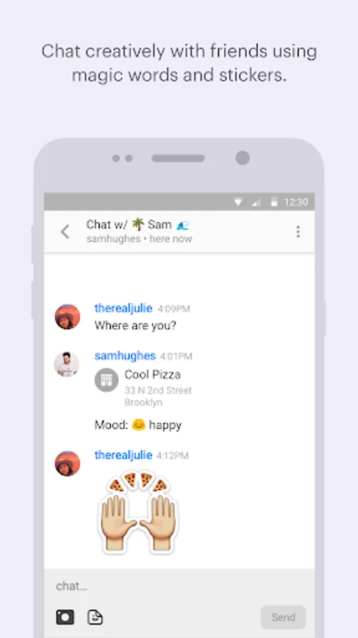 Peaching is just like texting, but better. Some words you type are magic words that give you quick access to all sorts of things to share, from drawings, links, and GIFs, to the weather, your current location, what you're watching tonight, how many steps you walked today, and much more.