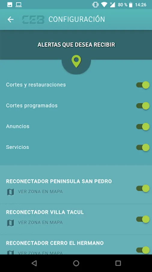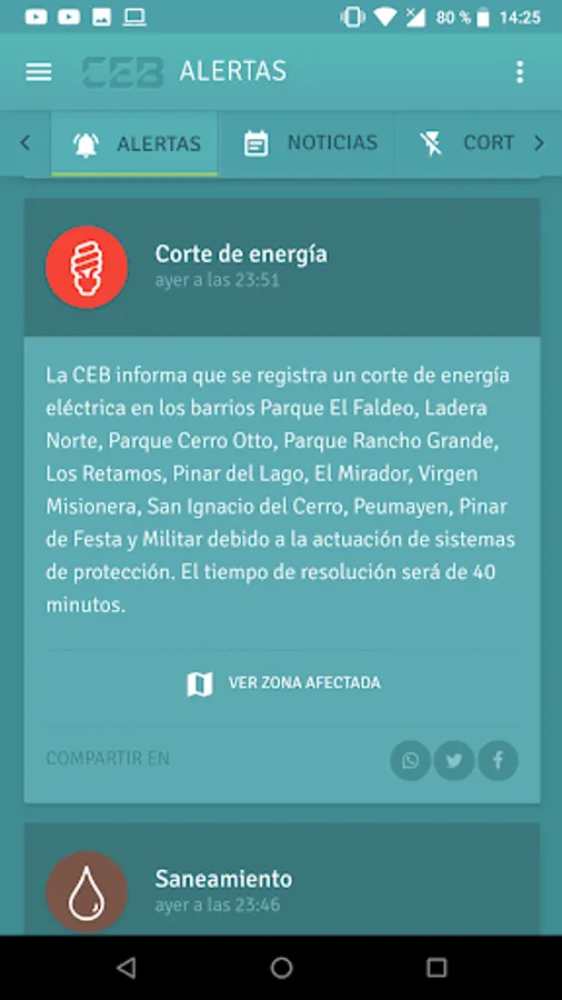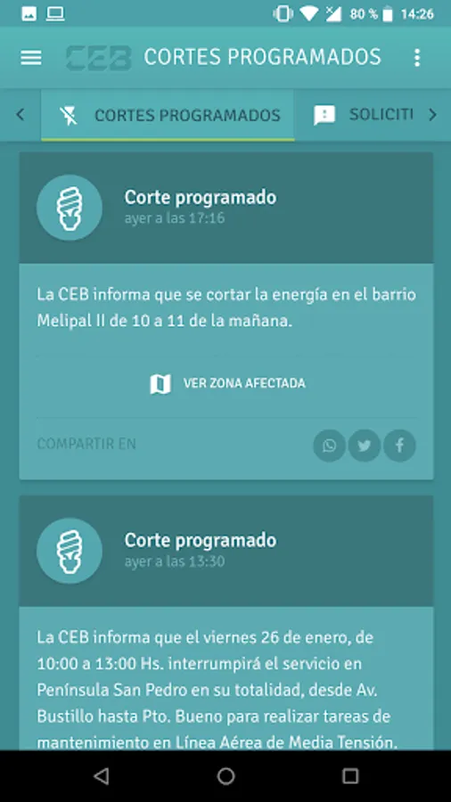 It also provides information on cuts and scheduled maintenance, service alerts, payment of bills and new services of the CEB.