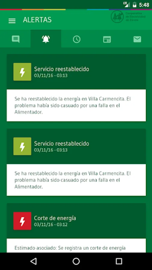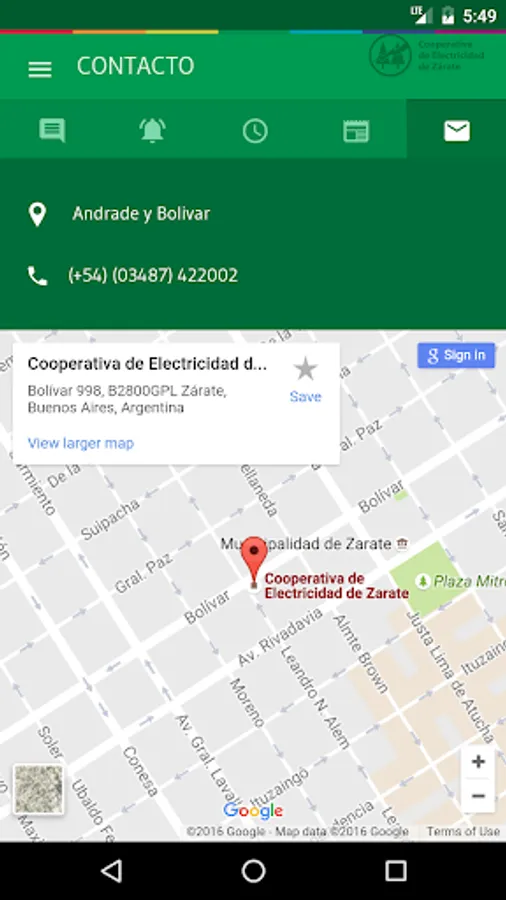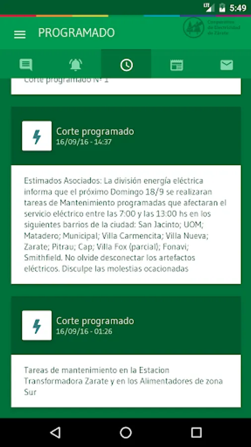 Electricity Cooperative de Zarate presents an essential tool that will allow users to know the status of the power grid in real time. The disadvantages arising and scheduled tasks affecting the distribution network in the match Zarate will be informed instantly by this application, providing accurate geographic data and estimated time of replacement.