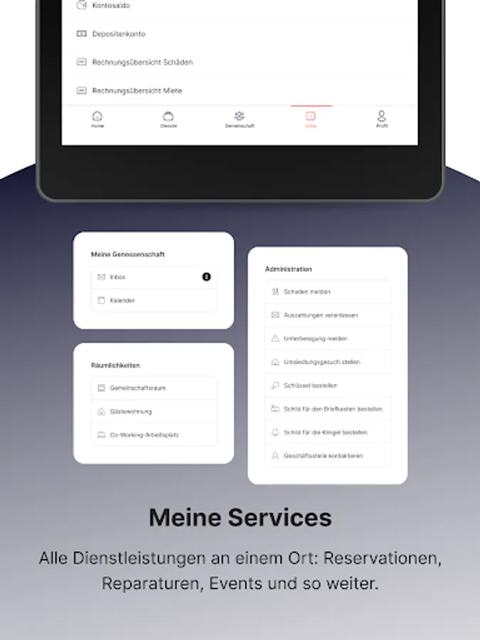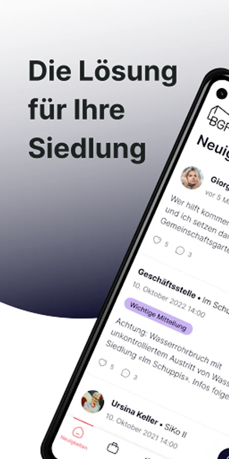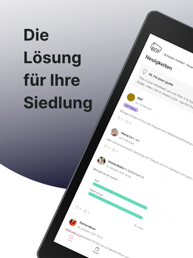 For residents of housing cooperatives who want to network with each other, actively participate in community life and conveniently do business with the office, BGF is both an electronic counter for the cooperative and a virtual meeting place for residents. BGF comes as a mobile app and web application.