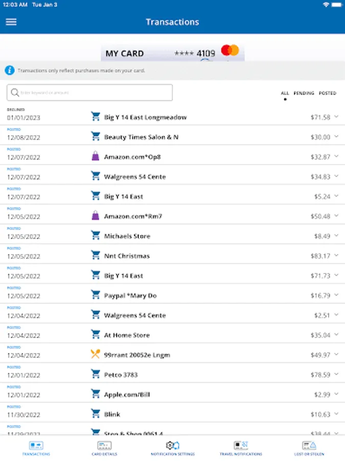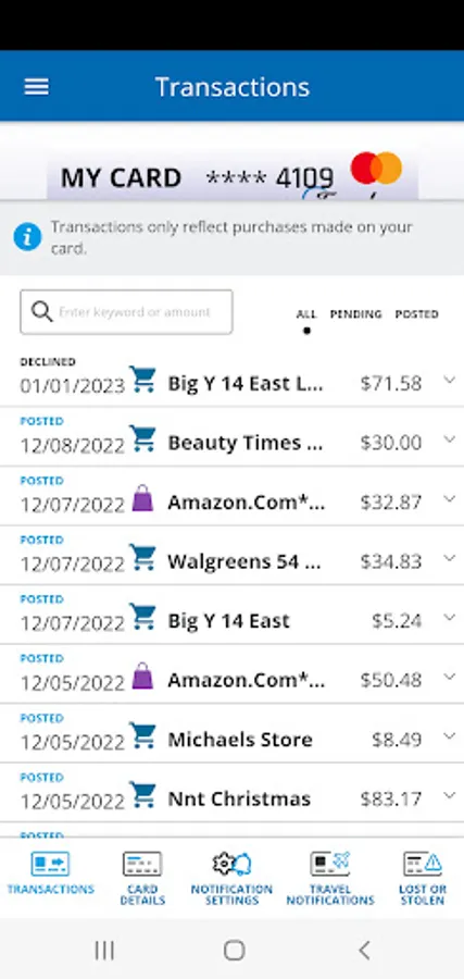 • View recent and pending transactions.