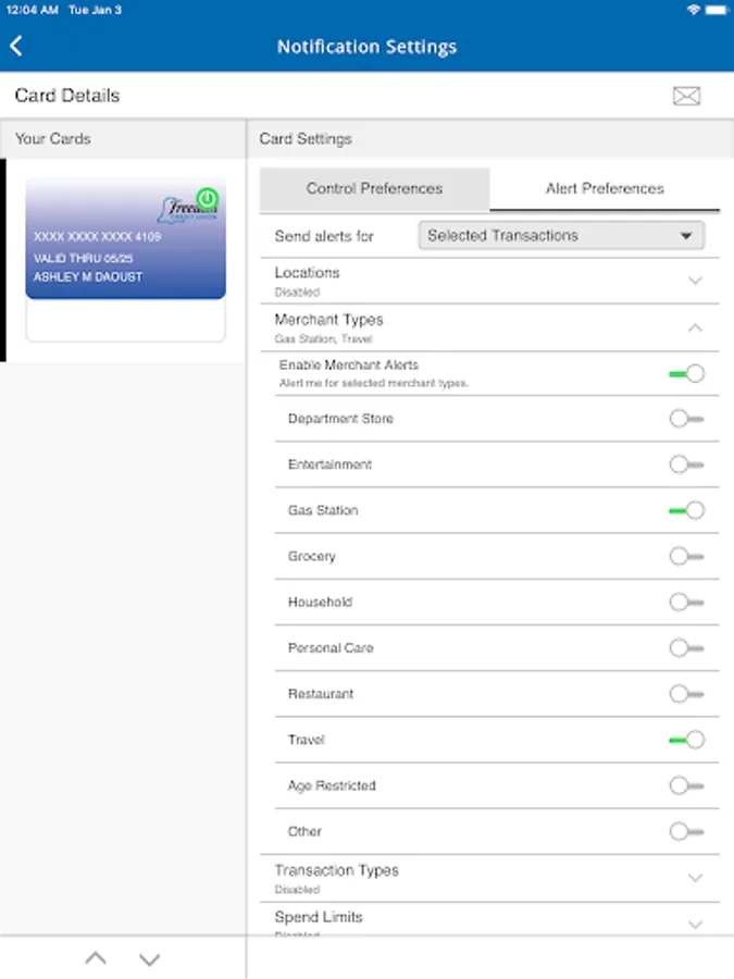 • Set alerts and controls on all of your Freedom Credit Union cards.