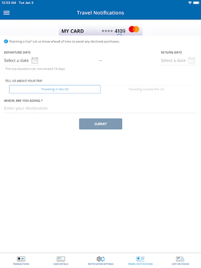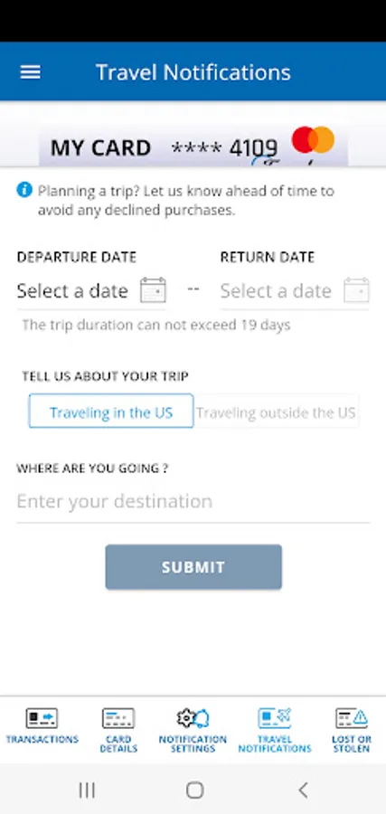 • Set travel notifications.