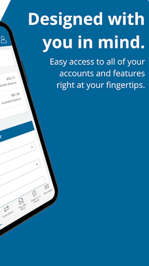 Easily access all of your accounts and features right at your fingertips with our mobile app. Manage your accounts, deposit checks, make transfers, pay bills and more!