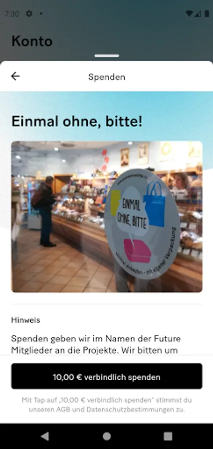 With Future Bonus you can buy permanently cheaper in sustainable stores and online shops - or you can collect donations for charitable projects in your city. Together with the other users, you promote companies that treat everyone fairly and protect our planet.