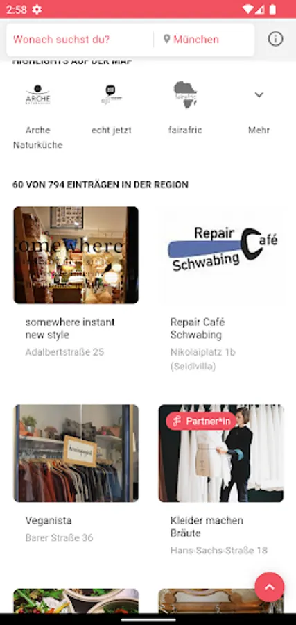 On Future Maps you can quickly and easily find really sustainable offers for all everyday needs, be it organic supermarkets, second-hand shops, fair fashion shops, vegan restaurants and cafés, but also exchange and repair options as well as urban gardens.