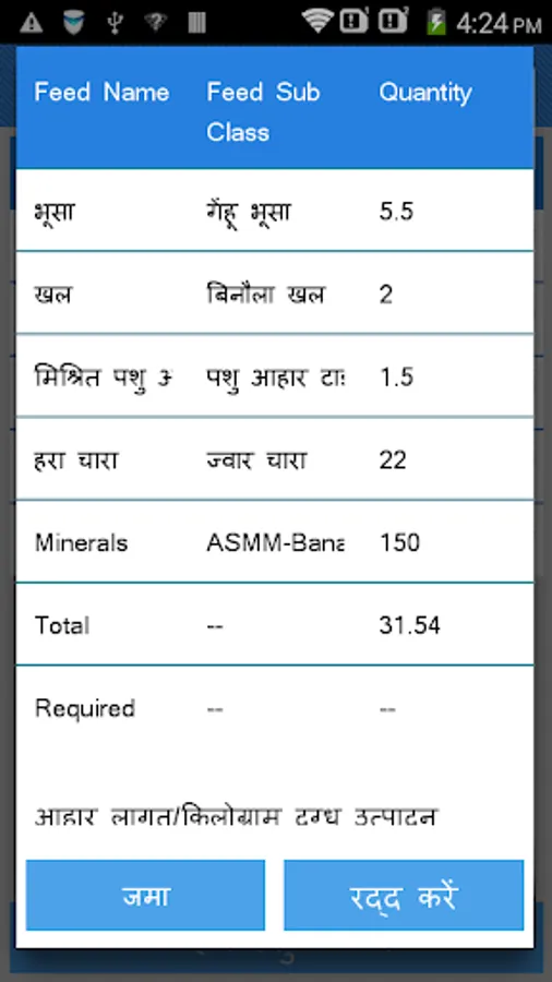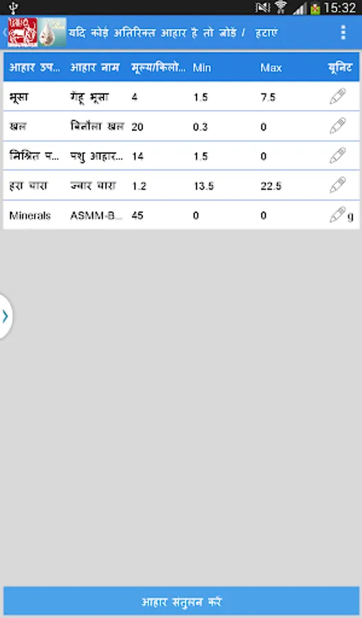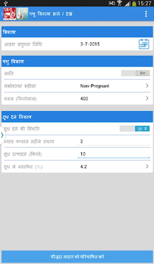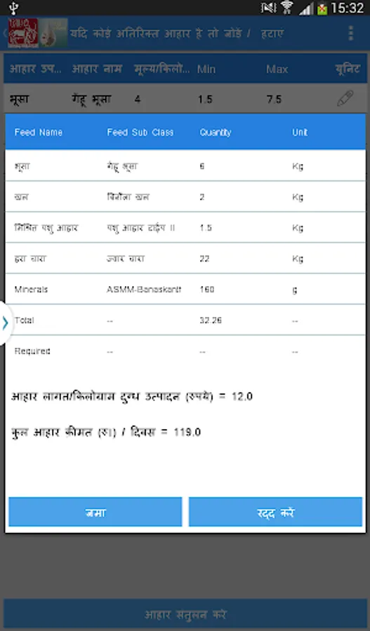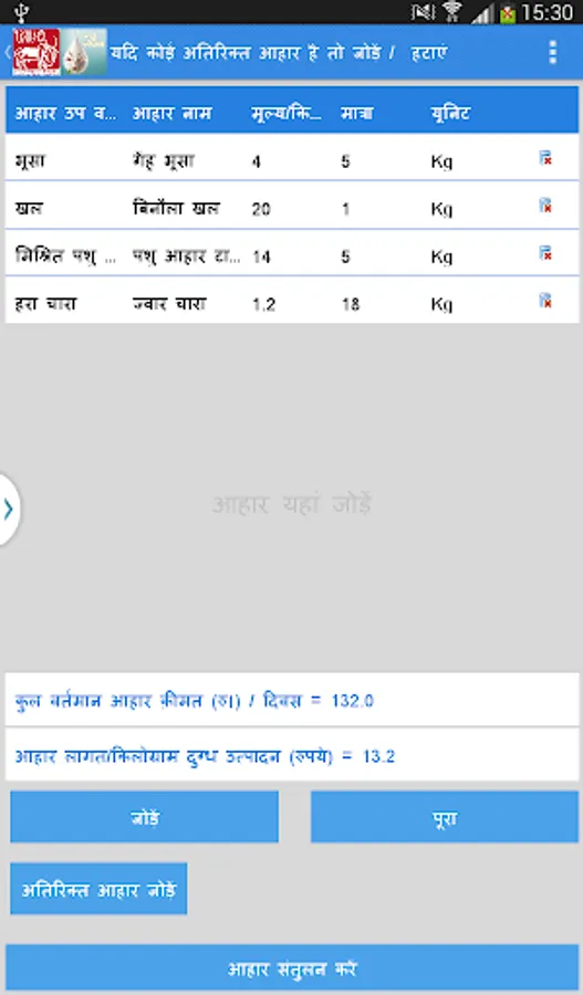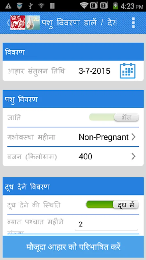 NDDB has developed an android based software that can be used on phones as well as tablets. With the help of this software balanced ration is formulated while optimizing the cost considering animal profile, i.e. cattle or buffalo, age, milk production, milk fat, and feeding regime etc. and milk producers are advised to adjust the quantity of locally available feed ingredients offered to their animals along with mineral mixture.