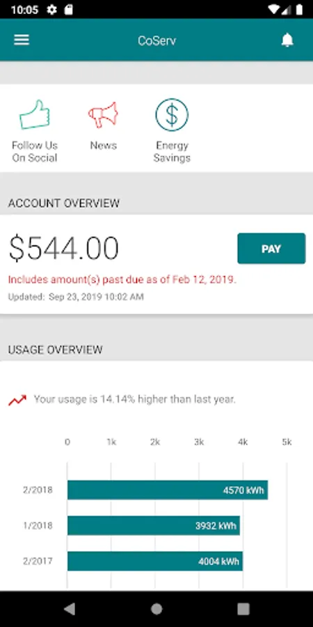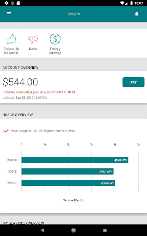 Pay your bill securely and on time each month. View your current account balance and due date, manage recurring payments, and modify payment methods. View bill history including PDF versions of paper bills directly on your mobile device.